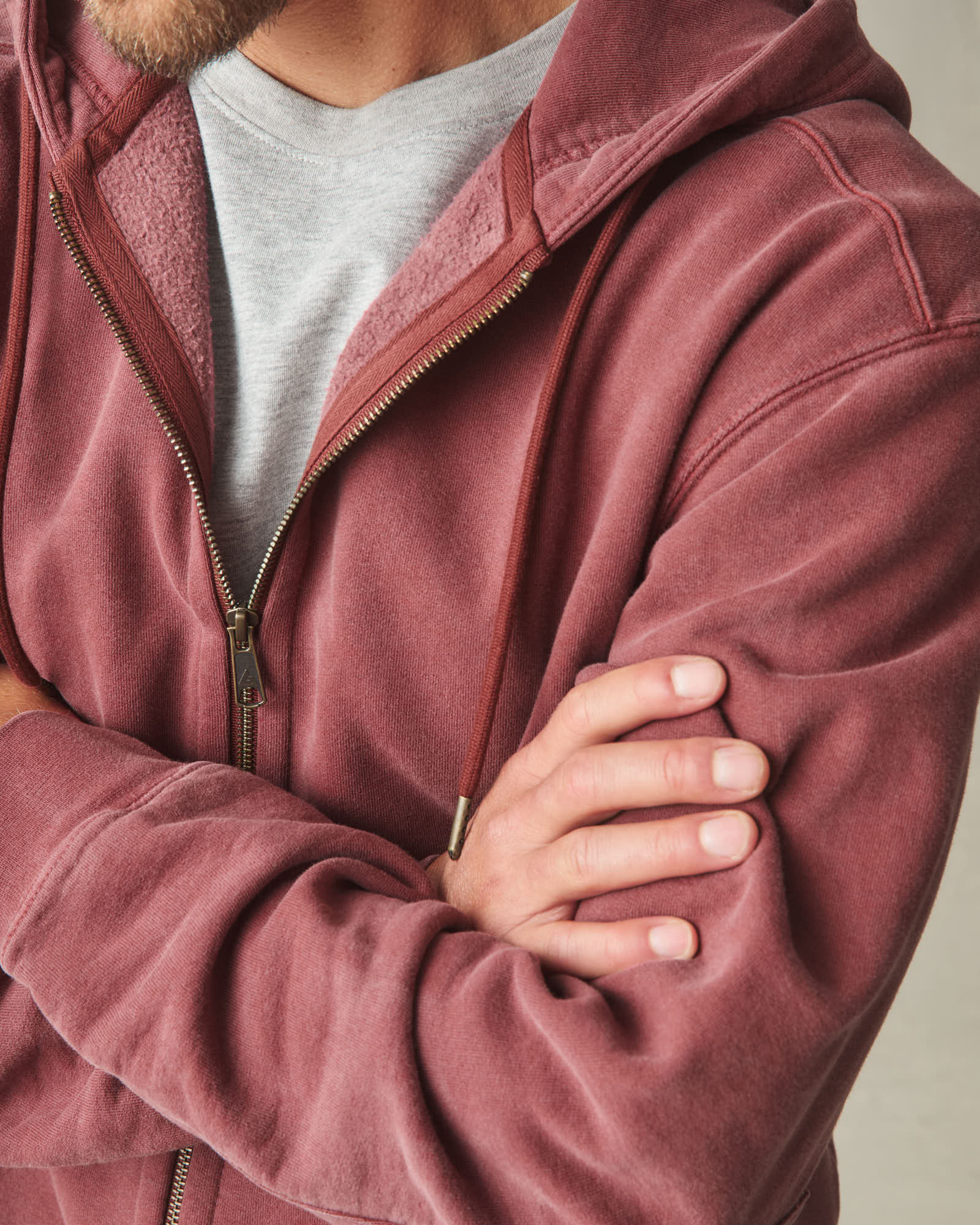 Men’s Vintage Wash Relaxed Classic Full Zip – Washed Russet Brown